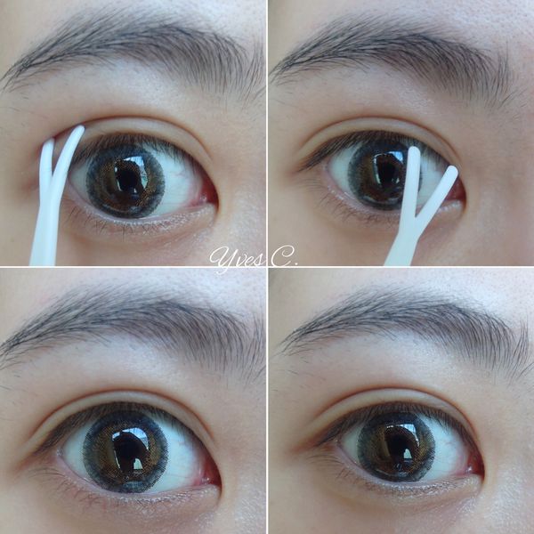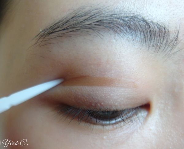 於摺線下方貼上雙眼皮貼