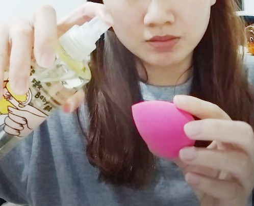 美妝蛋乾用的話,會吸收過量的粉底液,妝感很厚之外,塗起來還會卡卡的。