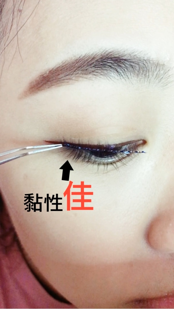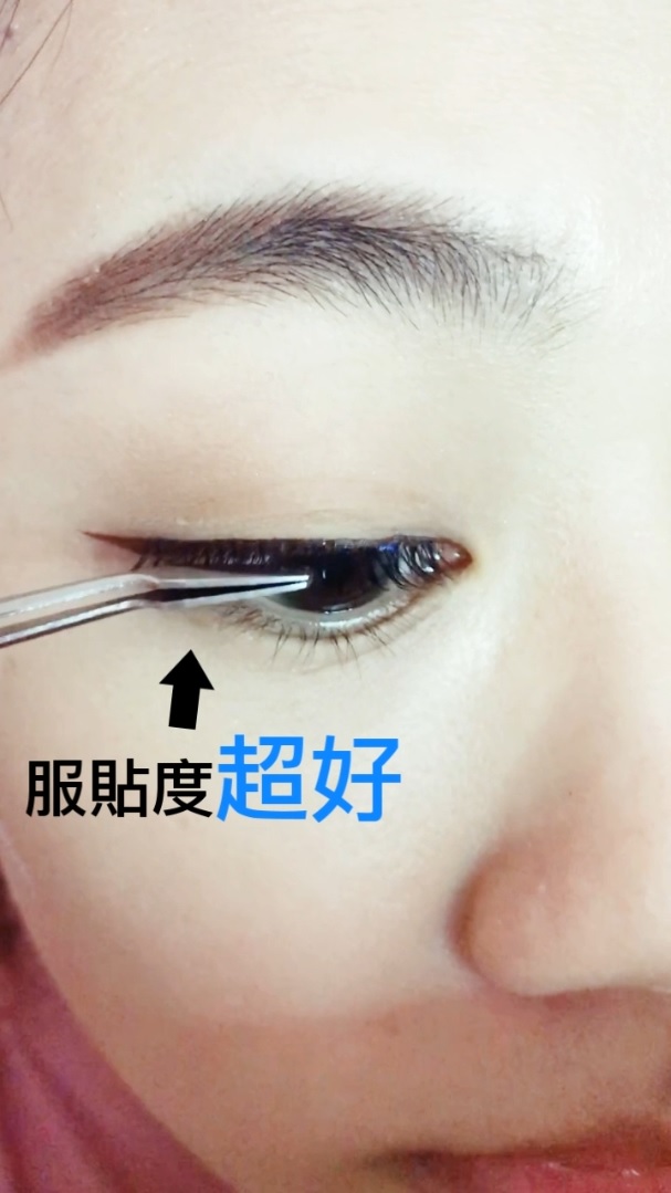 睫毛根部弧度黏上靜待大約30秒就完成囉~
